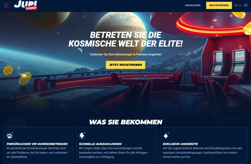 Casino Jupi Deutschland belohnt fortlaufendes Spielen durch kontoabhängige Aktionen und VIP-Berücksichtigung. Unser VIP-Team bewertet Ihre Aktivität und Beständigkeit, um die Berechtigung festzustellen, und wenn Sie ausgewählt werden, werden Sie von einem persönlichen VIP-Kundenbetreuer begleitet, der Sie während der gesamten Erfahrung unterstützt. Die VIP-Mitgliedschaft ist nicht standardmäßig dauerhaft – sie ist an Ihre Aktivität gebunden, und fortgesetztes Spielen kann sie verlängern.